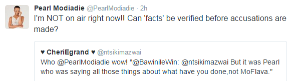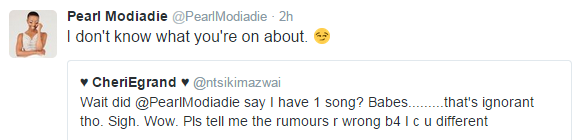 Ntsiki Mazwa took to Twitter to put Pearl Thusi on blast. This comes after Pearl, who's standing in for Sammy Sosa on Metro FM's Morning Fix, apparently said she's only had one song.